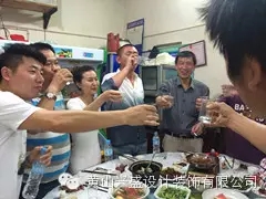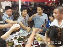 臨近聚餐的尾聲,總經理王國慶和全體員工共同研討公司的發展,傾聽員工對公司提出的意見和建議。