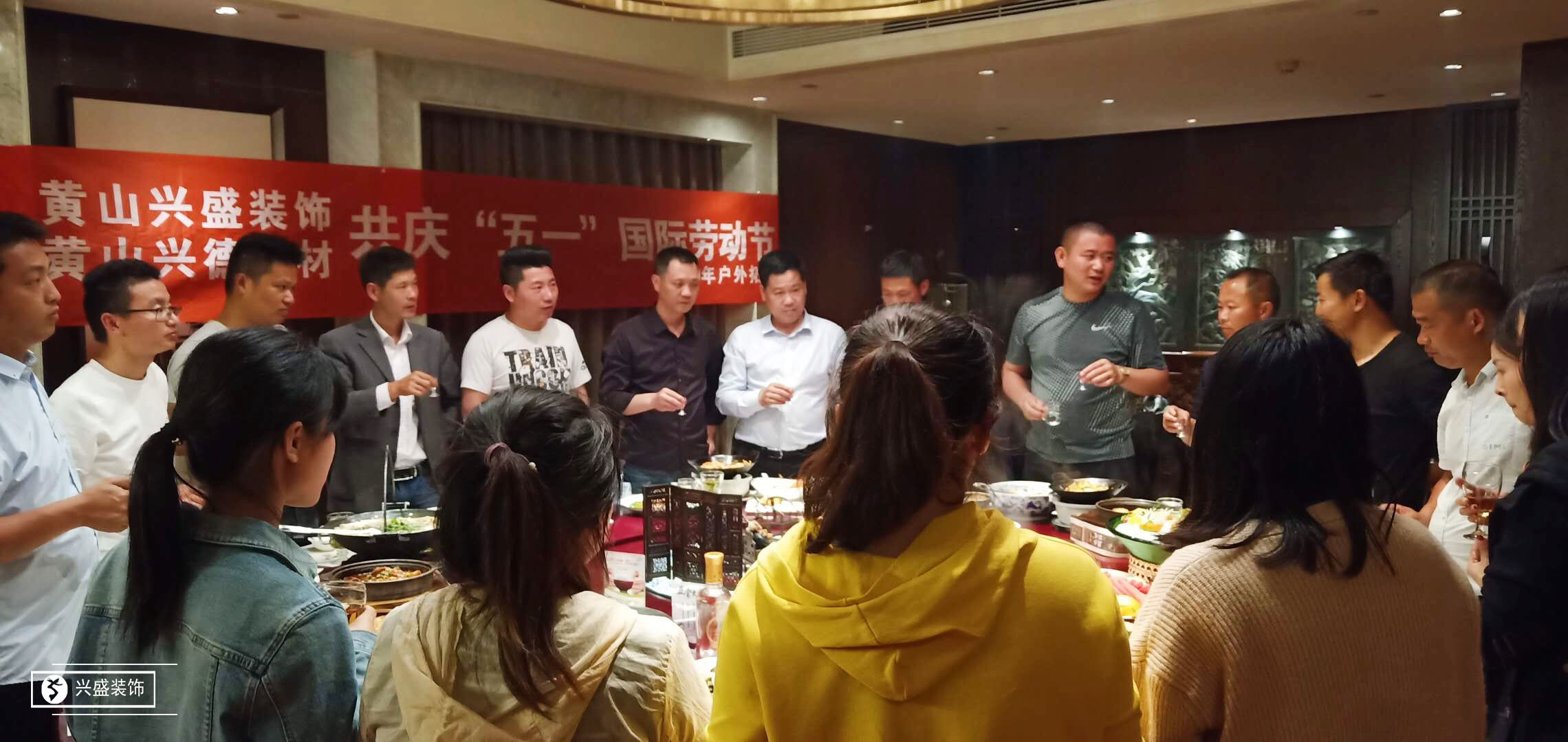 活動結束,興盛團隊與興德團隊共慶“五一”聚餐,董事長王國慶致辭勉勵全體員工同心同德,奮發(fā)前行,爭取美好生活。